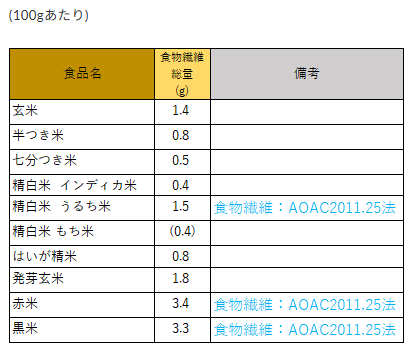 これは、この新しい計算方法が「低分子量水溶性食物繊維が多そうな食品」にのみ適用されるため、玄米には含まれていても計上されないからです。